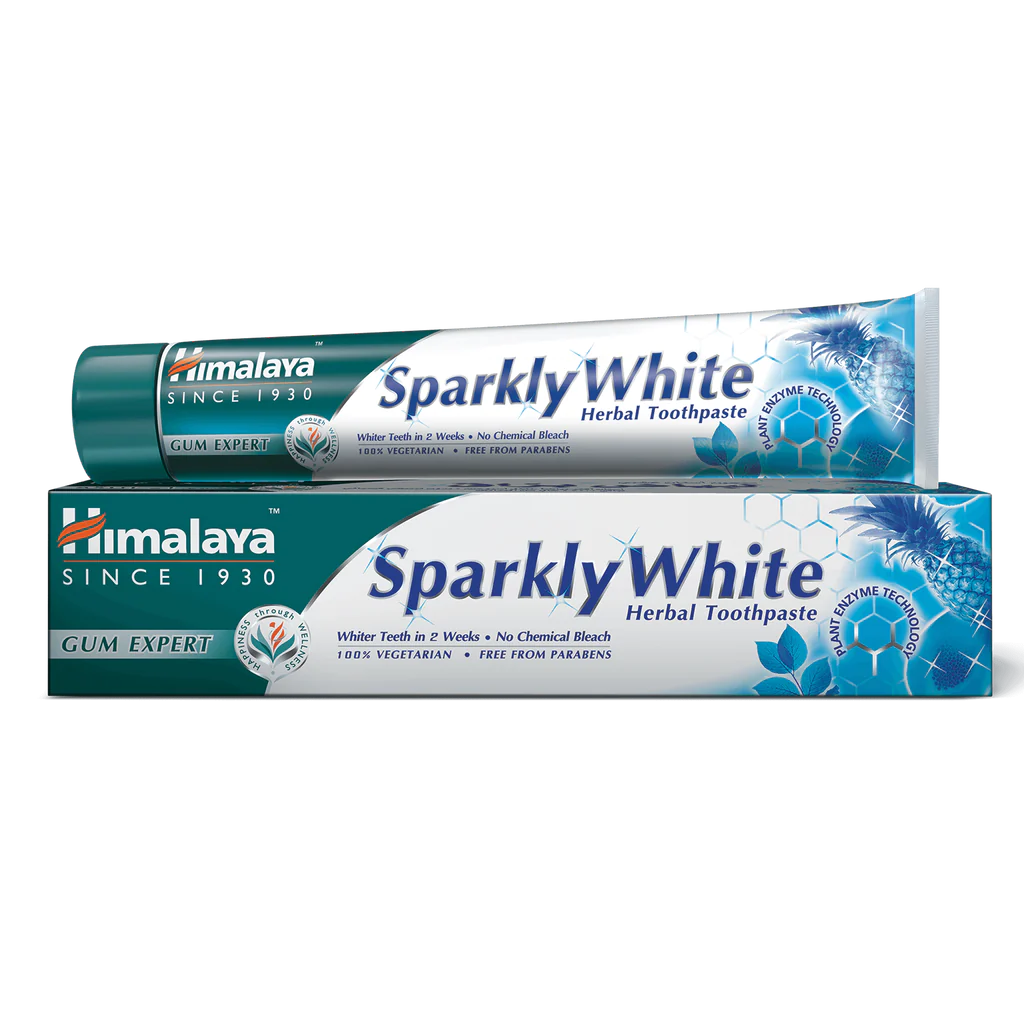 Himalaya Sparkly White Herbal Tooth Paste whiter teeth in 2 weeks, no chemical bleach, free from parabens.