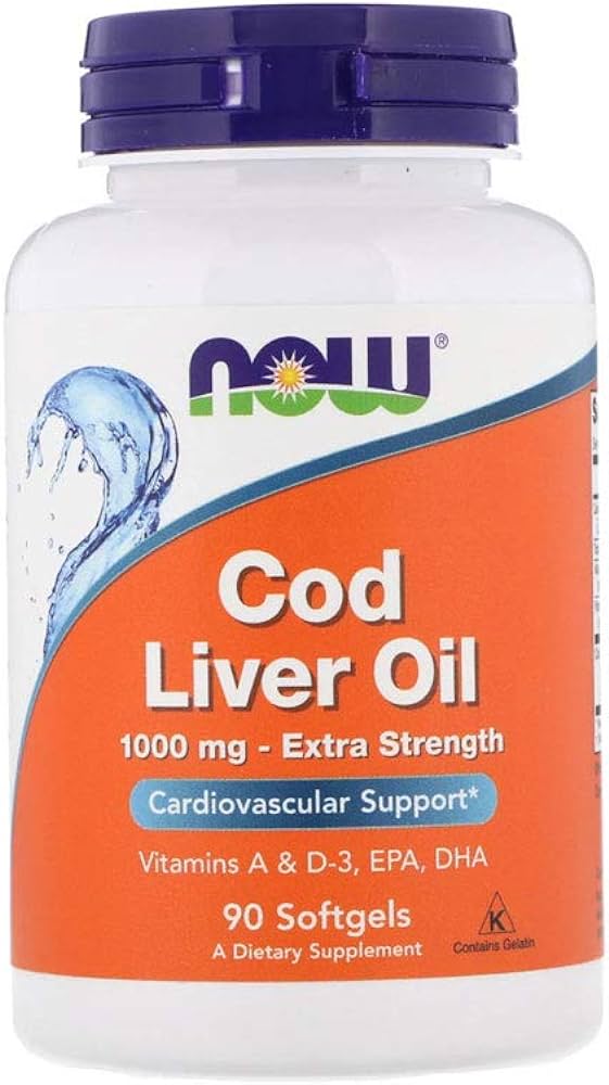 NOW COD LIVER OIL 1000mg contains fatty acids that prevent the blood from clotting easily, reduce pain & swelling, used for heart health, depression, arthritis & many other conditions.