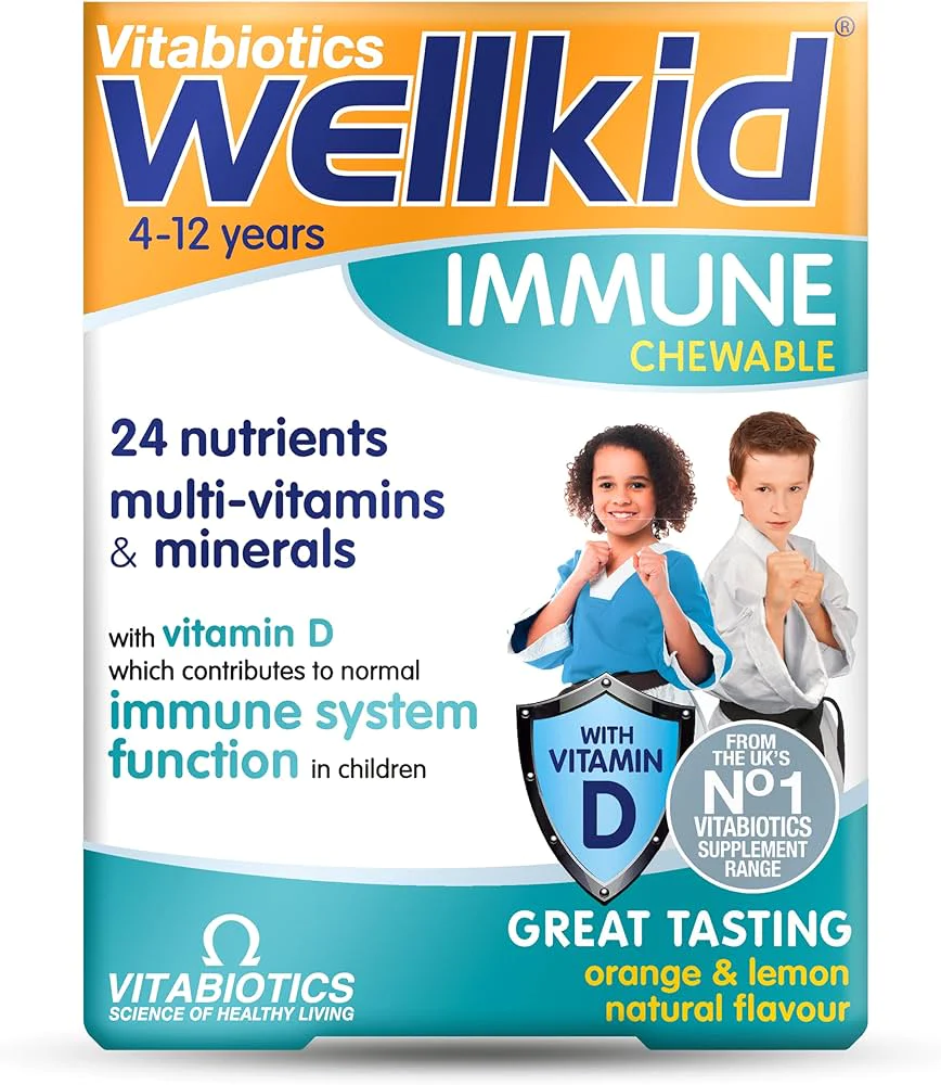 Vita biotics WELLKID Chewable Immune Tablets contains 24 nutrients, multi-vitamins & minerals with vitamin D which contributes to normal immune system function in children.