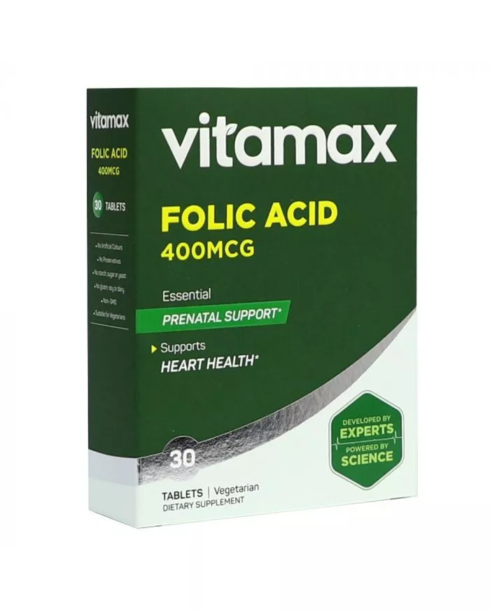 VITAMAX FOLIC ACID 400 mcg Tablet is a water soluble vitamin & it is an essential nutrient before & during pregnancy.